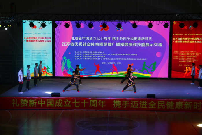 10月28日,由江苏省体育局、江苏省体育总会主办的江苏省优秀社会体育指导员广播操展演和技能展示交流活动在无锡市惠山区全民健身中心举办。来自全省13个市区450名江苏省社会体育指导员参与活动。