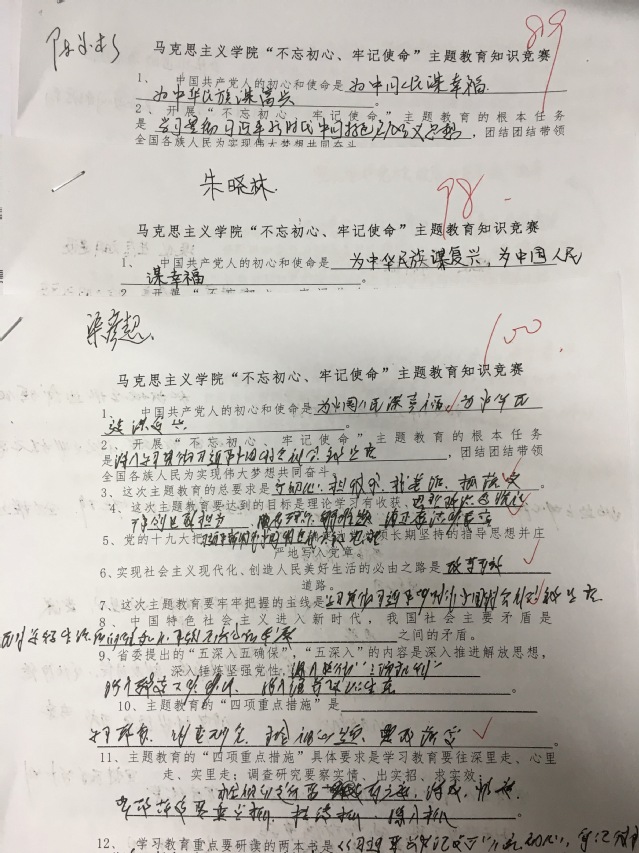 本次知识竞赛前,支部进行了广泛动员,学院教师在繁忙的课务之外打印《“不忘初心、牢记使命”主题教育应知应会百问百答》相关学习材料,阅读背诵,积极备战。