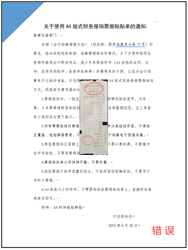 为落实上级文件精神,进一步规范报销附件处置,为票据影像化及报销全流程网上处理做好准备,现将关于财务报销中附件管理的一些事项进行说明: