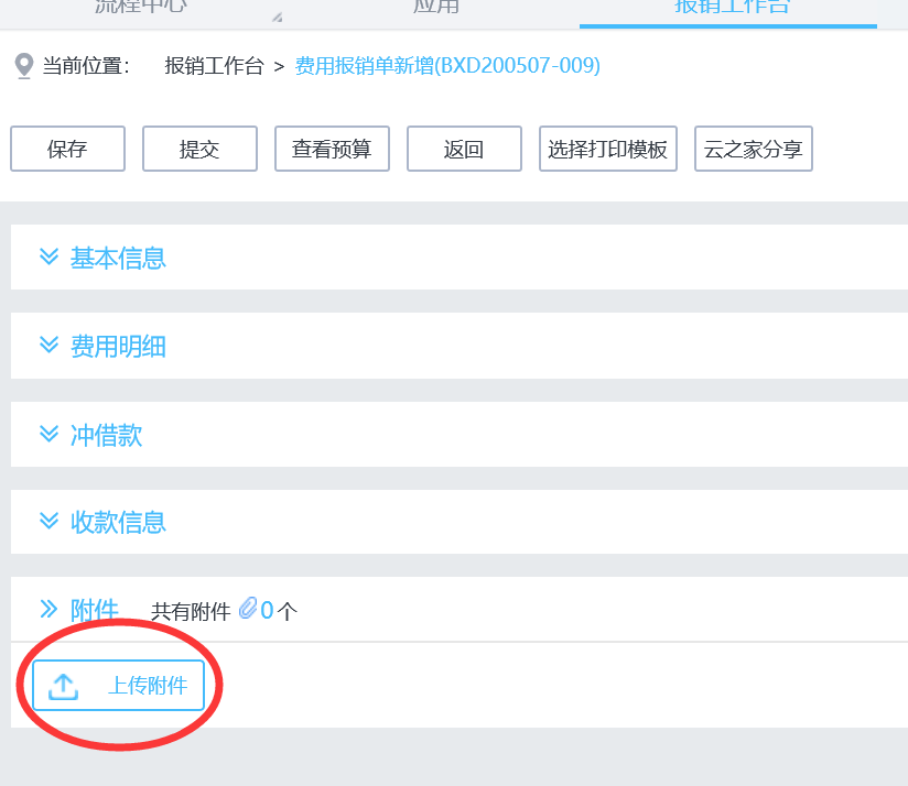各财务经办人打印电子会计凭证用于报销时,请同时将原文件作为附件上传至财务服务平台用以存档。具体操作提示见下图。