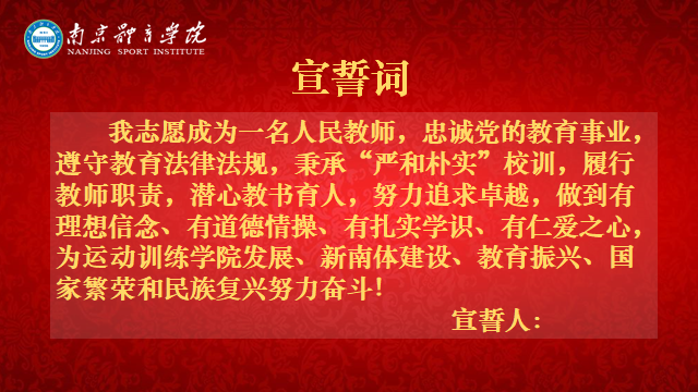 5月26日下午,运动训练学院在仙林校区315党员活动室举行新教师入职宣誓仪式。