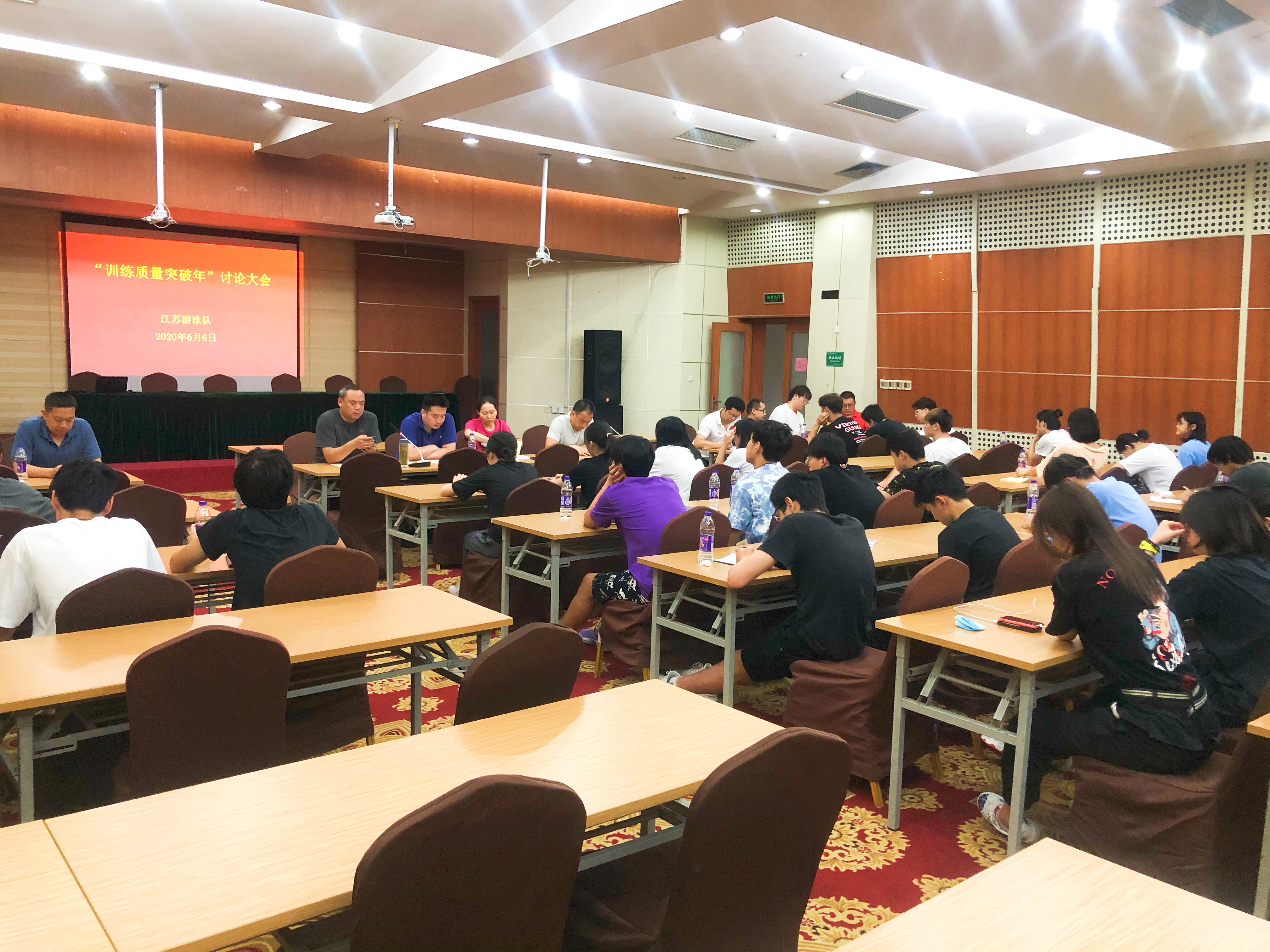 根据《PA视讯集团入口“训练质量突破年”行动方案》要求,6月6日下午,游泳队全体教练员、运动员、管理人员在方山转训基地会议室开展了“训练质量突破大讨论”专题讨论活动。