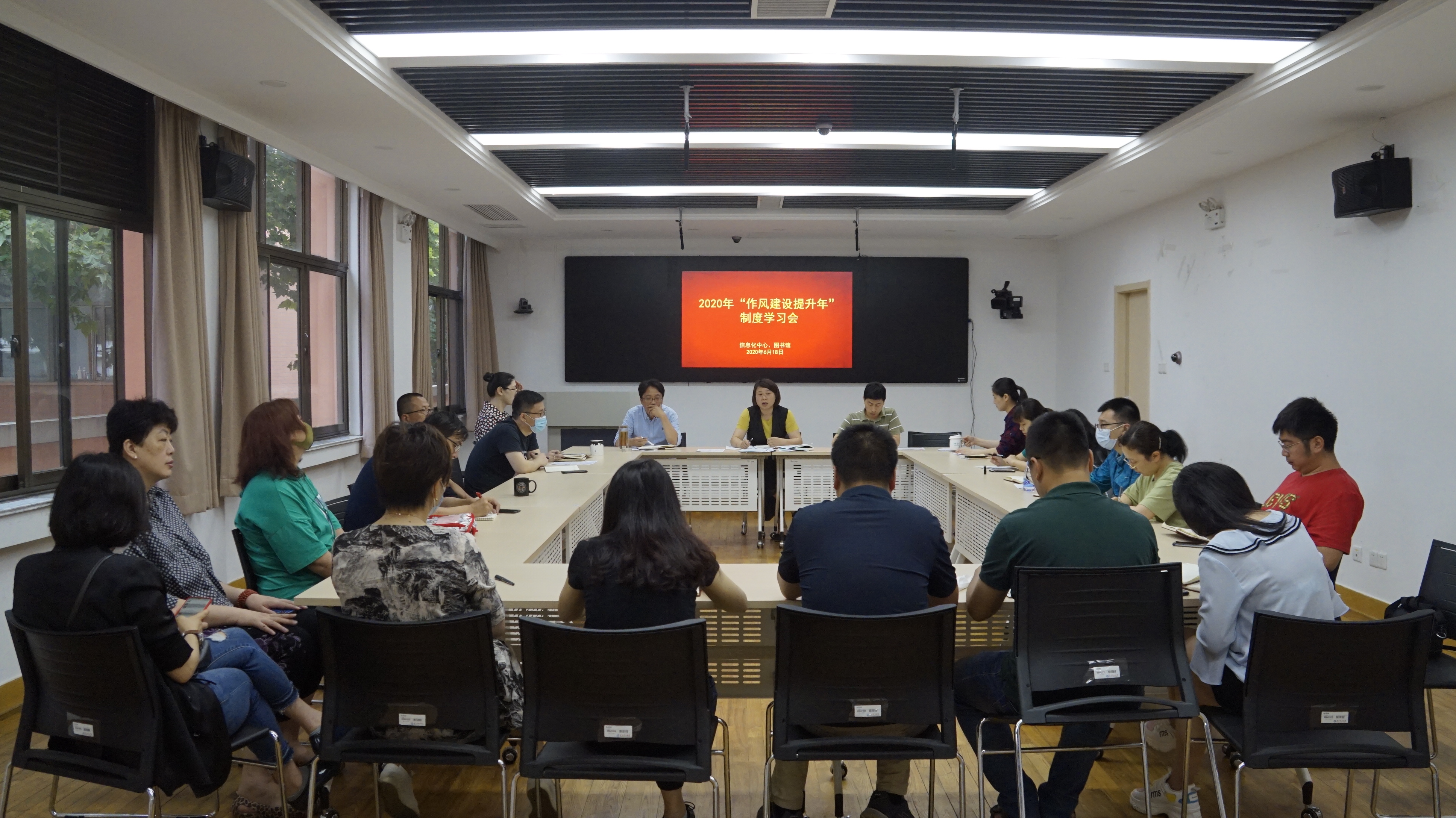 6月18日上午,信息化中心、图书馆召开2020年“作风建设提升年”制度学习会。信息化中心主任、图书馆馆长葛见珠主持会议,部门全体人员参加。