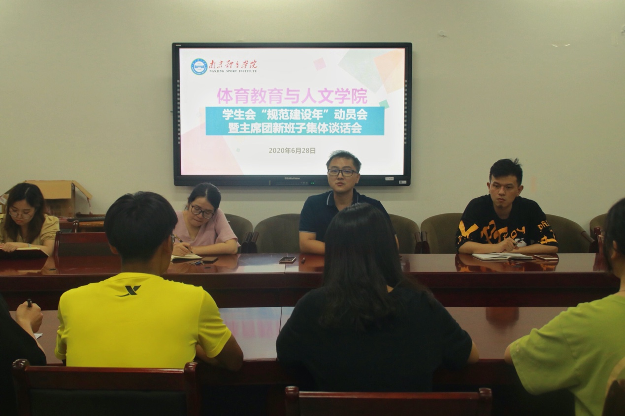 为进一步加强学生会工作规范,启动学生会“规范建设年”,在学年结束之际做好学生干部新老交接,6月28日我院召开院学生会“规范建设年”动员会暨主席团新班子集体谈话会。院党总支副书记卢奎、学工办主任汤皓、团委书记乐晓云、辅导员沈梦出席会议。学生会主席团成员参会。