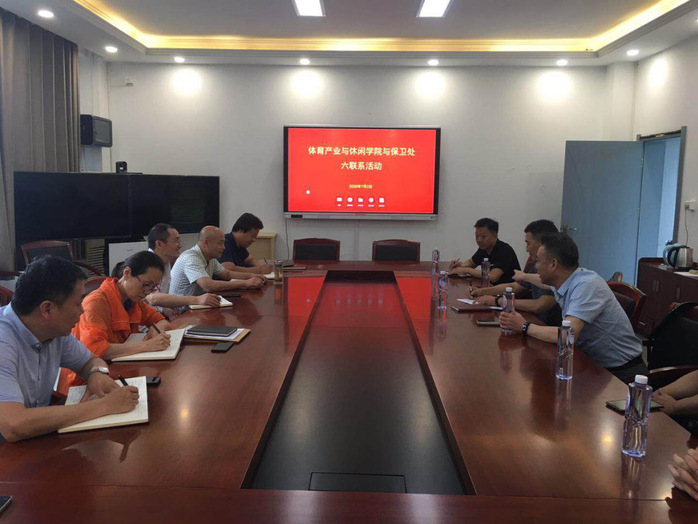 为认真贯彻落实PA视讯“作风建设提升年”工作要求,进一步加强学院党建工作,改进党政领导班子成员的工作作风,树立职能部门与二级学院相互融合的理念,提升服务意识,7月2下午,体育产业与休闲学院与校保卫处开展“六联系”活动。会议由体育产业与休闲学院党总支书记王进主持。