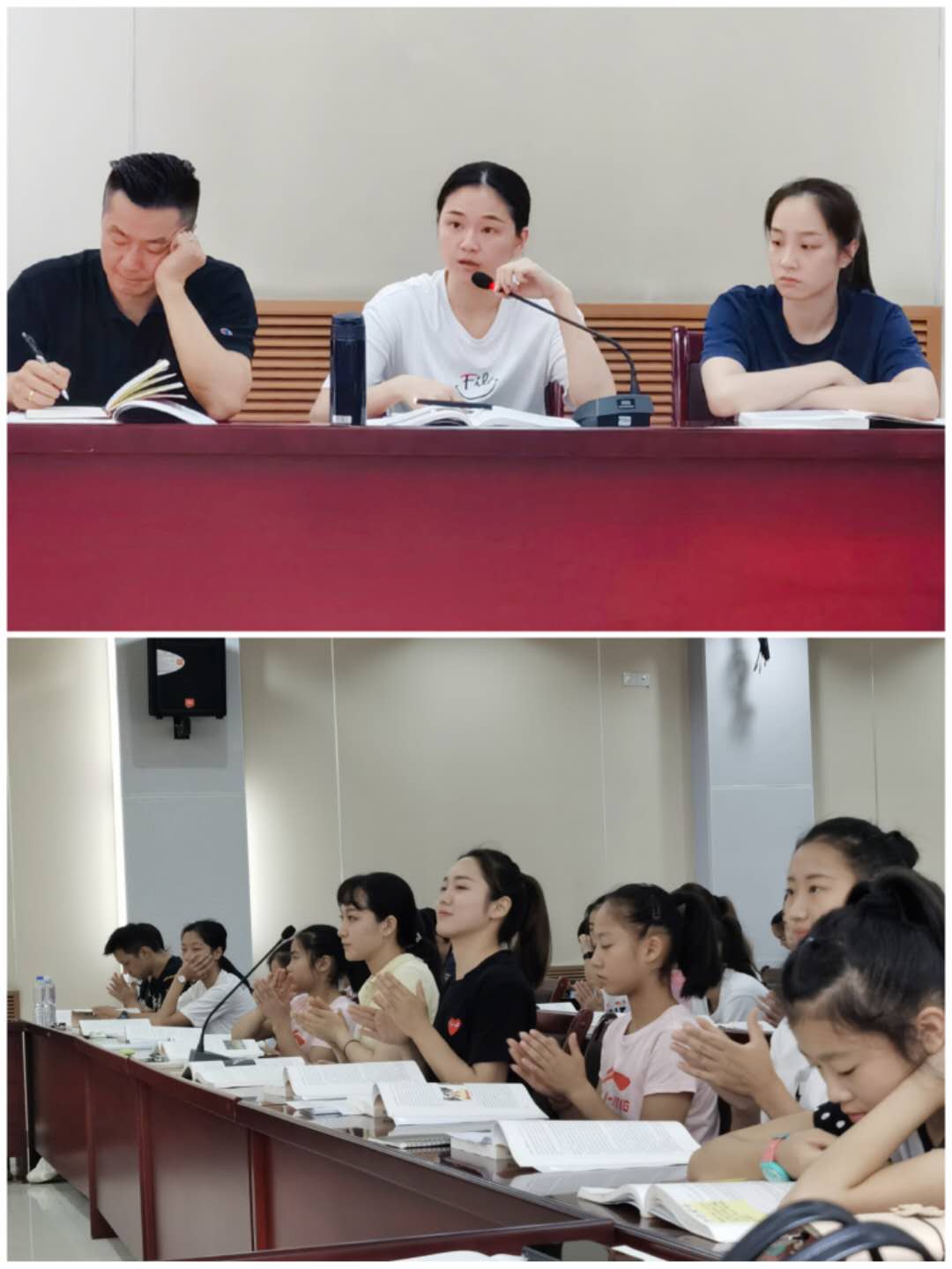 此次读书活动分为三个环节,分别是《奋斗铸辉煌 群星耀中华——PA视讯集团入口奥运冠军录》读书心得分享、师生座谈以及王国庆教练讲述奥运冠军黄旭的成长史。