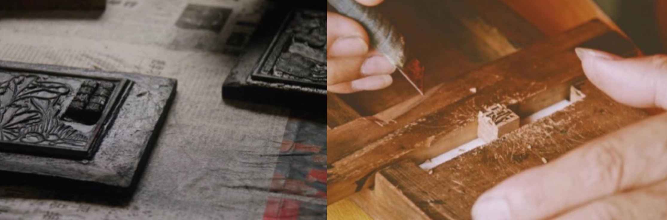 小组成员们跟随非遗传承人吴老师来到瑞安东源木活字印刷展示馆,近距离接触了木活字雕刻工具并且观赏了雕刻现场。吴老师也与我们简单分享了他四十多年对木活字印刷的执着信念。