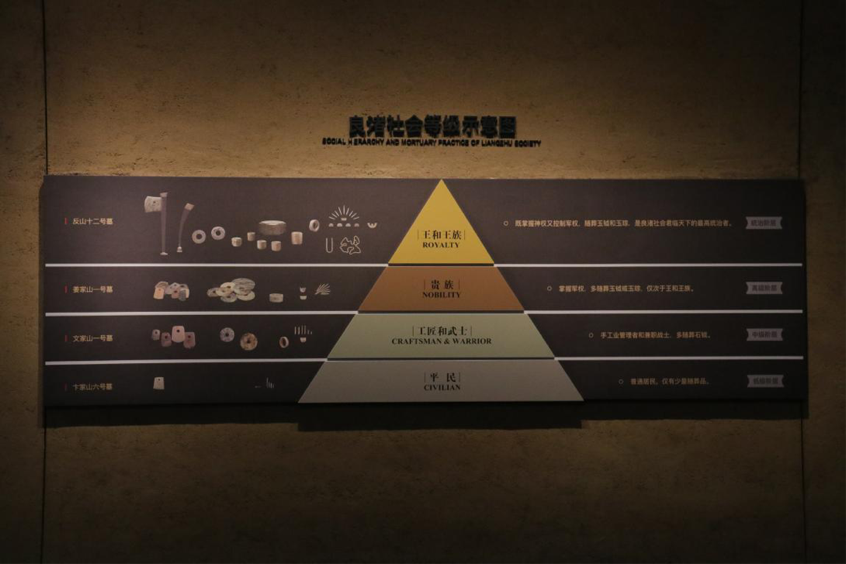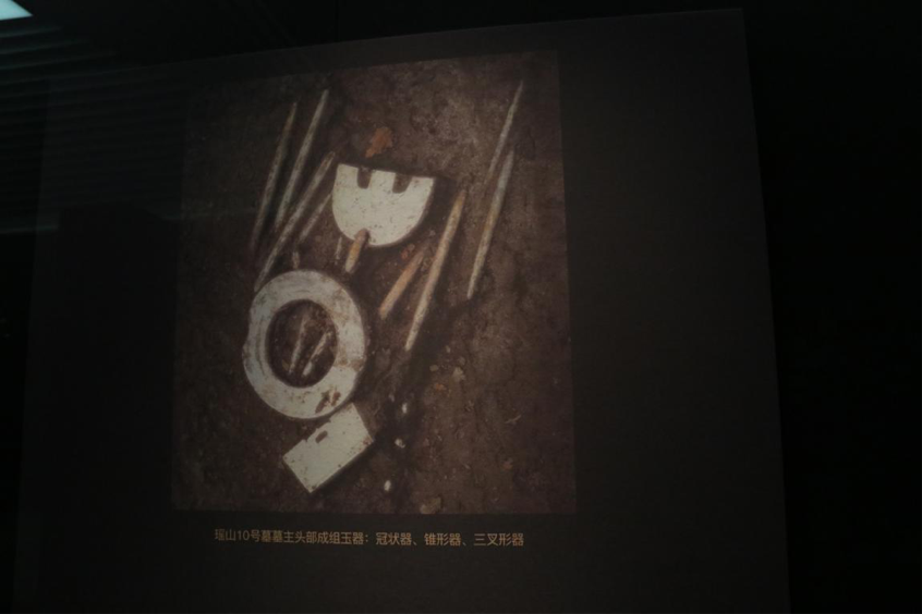 团队成员在管理员章先生的带领下,更深入的了解了良渚文化。从序厅右转便进入第一展厅,这里概貌地介绍了良渚文化的内涵、分布范围。整个第一展厅,在以良渚文化时期古老的原始生态环境和日常生活的大幅背景壁画场景中,复原了当时的快轮制陶和先民纺织的生动场面。可以想象到良渚先民的生活是相当滋润的。第二展厅设于博物馆主楼二层东侧,用6组展柜展示着良渚文化部分精品器物,有雕琢精美的玉器、磨制精细的石器及制作规整的陶器。第三展厅设于博物馆主楼二层西侧,复原展示了一座良渚文化时期的“玉敛葬”大墓,具有很强的视觉震撼,同时在四周墙面展示了不同等级的墓葬出土照片,通过丰富的墓葬资料的对比展示来揭示良渚文化社会等级的分化和阶级的形成。