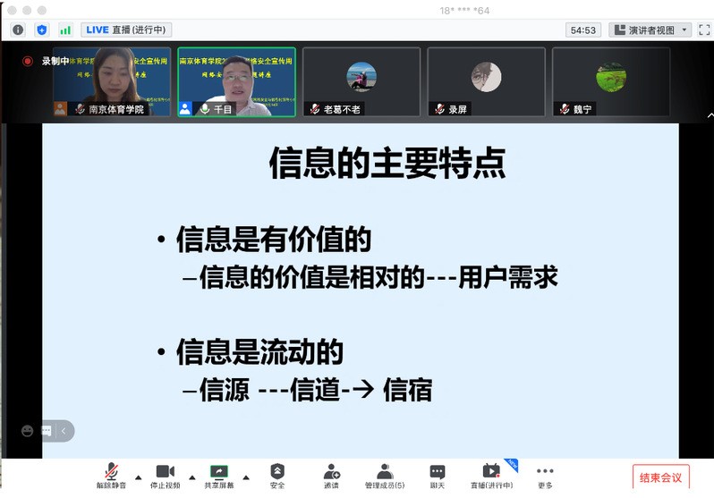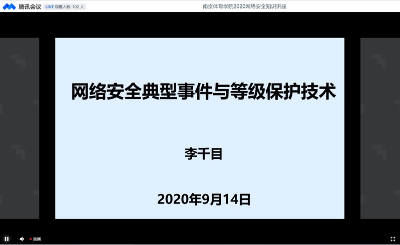 9月15日15:00,信息化中心、图书馆全体人员集中观看江苏省教育系统网络安全宣传周校园日活动直播。