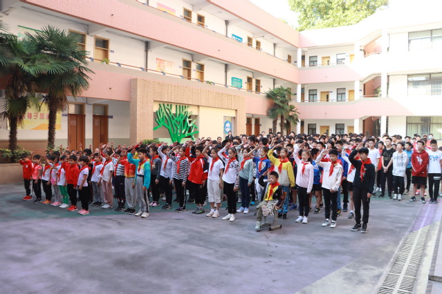 为庆祝中华人民共和国成立71周年,贯彻落实中共中央、国务院关于《新时代爱国主义教育实施纲要》要求,9月30日上午7:50附属学校全体师生员工在一楼天井举行“爱祖国、迎国庆”为主题的升国旗仪式。附属学校副校长王蓉主持了升国旗仪式。