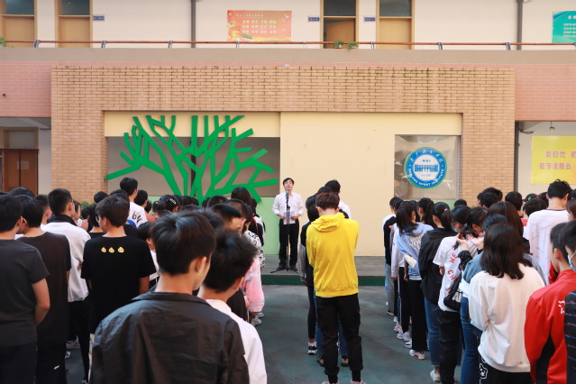 升旗手,高二年级羽毛球队队员王慕云在国旗下发言,她表示身为新时代的运动员,刻苦训练、顽强拼搏、永不言弃,让祖国的五星红旗始终飘扬在国际体坛的上空,这是我们的责任,是体育爱国的生动表现。