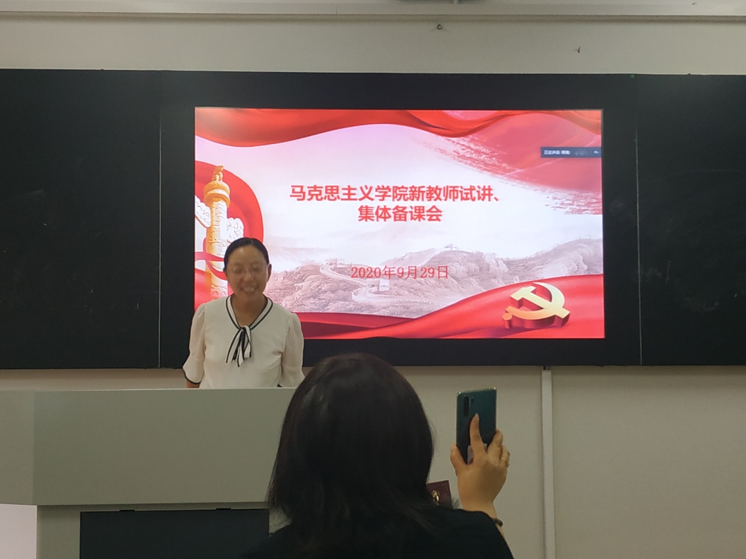为进一步提高课堂教学质量和教学水平,帮助新进教师顺利融入角色,9月29日下午,马克思主义学院在教学楼1304教室组织开展了新进教师专题试讲活动。本次活动由葛翠柏书记主持,全体教师参加活动。