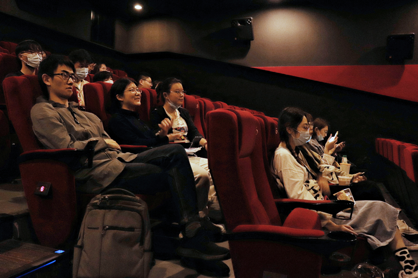 观影的学生记者合影