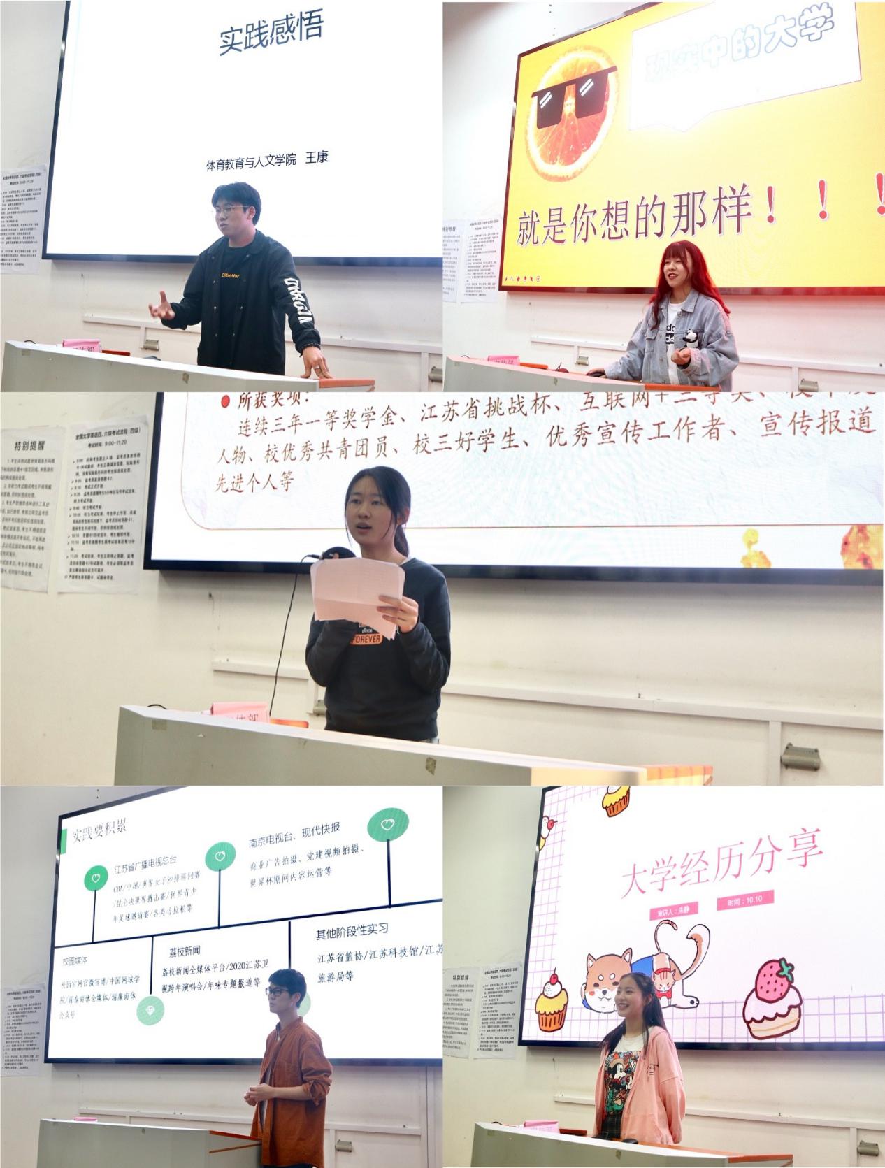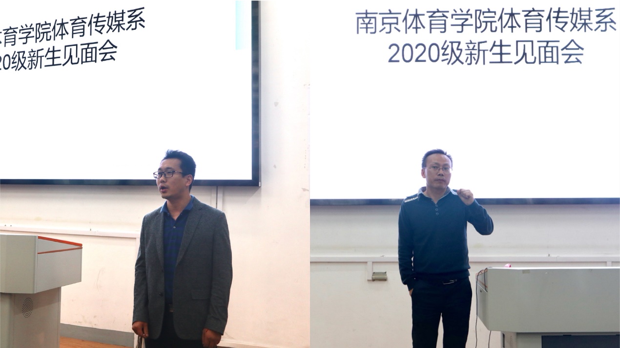 今年的新生见面会与往年不同,体育教育与人文学院体育传媒系邀请了本专业五位优秀的学生代表向2019、2020级全体同学做专业介绍。会议伊始,首先发言的是连续三年考取专业第一并获研究生推免资格的大四的沈璇同学,身为优秀学姐的她向学弟学妹们分享了自己大学四年的学习与实践经历,并寄语新生“不负四年光阴,努力成为你想成为的人。”。而已拿到“字节跳动”offer的大四学长朱春锦则在专业实践、工作面试等方面与大家进行了交流;大二的孙裕捷同学分享了自己作为出版公司签约作家的奋斗历程;此外,还有世界军人运动会篮球转播最佳志愿者的王康同学,以及多次参加大型赛事媒体服务活动的校青媒主席朱静同学,他们均分享了自身在专业学习和专业实践等方面的经验感悟。学长学姐们的依次发言让新生同学们了解到了很多本专业的相关知识,以及如何去提升自我的相关经验。