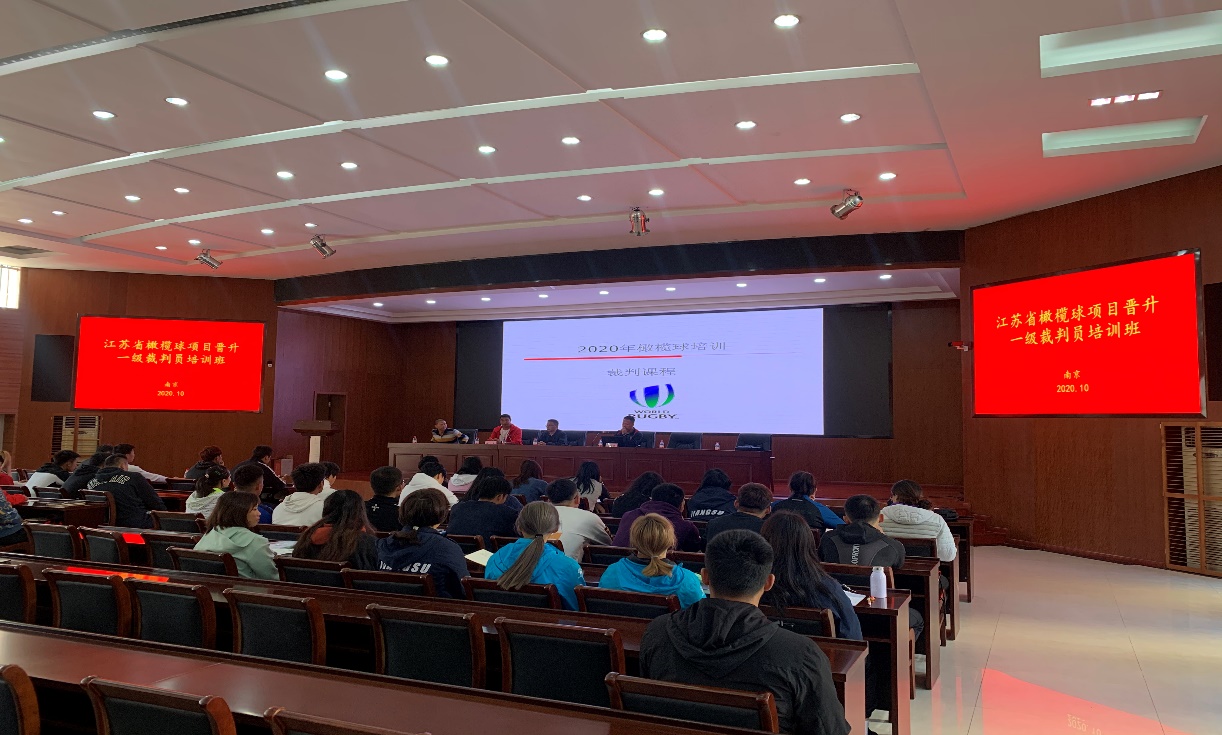 2020年10月20日运动训练学院与江苏省体育局小球运动管理中心联合组织江苏省一级橄榄球裁判员培训班,聘请中国橄榄球协会裁判讲师刘云斐老师为PA视讯集团入口橄榄球专项学生、江苏省橄榄球项目晋升一级的裁判员和省体育局训练中心橄榄球运动员进行裁判培训指导。