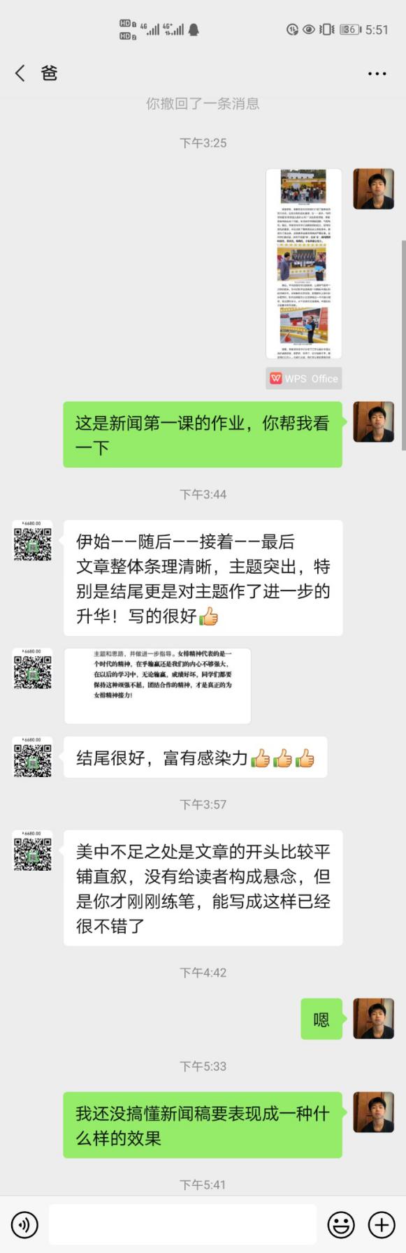 体育传媒系组织大一新闻专业学生参观中国女排的发展历程,体验勇敢拼搏的女排精神内核,并结合信息时代的新闻传播的重要性,教大家如何做好一个优秀的新闻人,布置给同学就此次活动写好新闻第一稿,并要求同学将稿子发给各自的家长,与家长多多交流,多多互动。接到课程作业任务后,同学们都很热情积极地完成了他们来到南体的第一份“答卷“,并且兴致勃勃地将他们精心打磨的新闻稿发给家中热切等待儿女学习近况的父母们,请他们对同学们的作业进行评价。