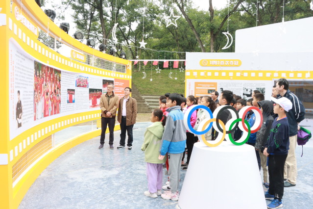 章遵同志与师生们一起参观“女排精神”文化展