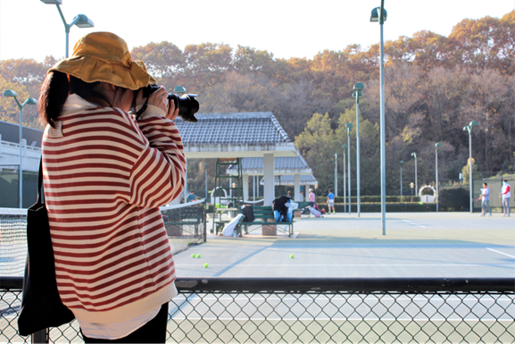 来到网球训练场地,“砰砰砰”的击球声和脚步摩擦声夹杂着。烈日下,运动员双眼坚定地注视着网球,判断移动轨迹,敏捷地移动着身体,完成一系列引拍、挥拍、击球的动作。每一个完美的击球背后都是运动员们年复一年刻苦训练的成果,每一份荣耀也是由运动员们数十年如一日的汗水铸就。同学们举起相机,记录下一个个精彩的挥拍、击球瞬间。在快门声与击球声的交错中,学生们记录下了运动员们的精彩瞬间。从中,学生既锻炼了体育摄影摄像的专业技能,又提升了体育审美。学生们切实地感受到了网球运动的独特魅力,深刻感悟了运动员们拼搏不息的精神、坚定的体育理想信念和对体育梦想的追求。