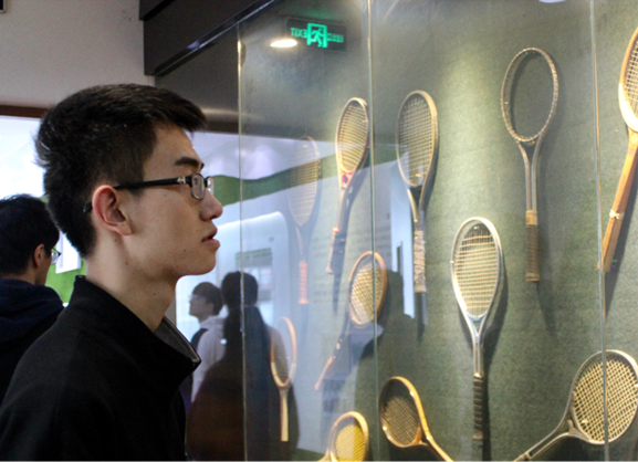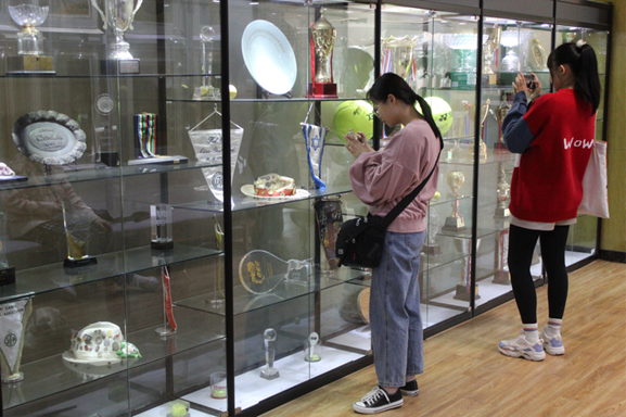 随后,学生来到一楼先后参观了网球文化展示厅和南京青奥遗产展示馆。在这里,网球文化直观地呈现在学生的面前,从网球器材的演变历史到中国网球的发展历史,从一幅幅精美的网球摄影作品到一件件青奥遗产展品…浓厚的网球文化氛围带给了学生沉浸式的体验,积极进取、不断突破的网球精神和青奥精神给予了学生激励与启发。学生在参观中既对于网球和中国网球学院有了更深刻的认识,也感受到了体育精神的力量。