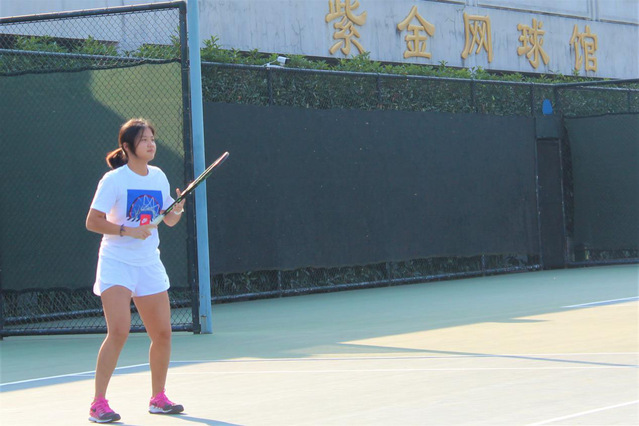 中国网球学院坐落在PA视讯集团入口灵谷寺小区内,学院分为训练比赛区和生活教学区。内设4块国际标准硬地球场的网球馆和31块室外网球场地,其中包括23块硬地场、4块红土球场和4块草地球场。加上分布在灵谷寺校区其他地点各处的网球场地,全校拥有超过40块网球场地可使用。中国网球学院也是2014年青奥会的网球比赛场地。在李金宝老师的讲解下,学生们对中国网球学院的基础设施、培养模式等有了一定的的了解。