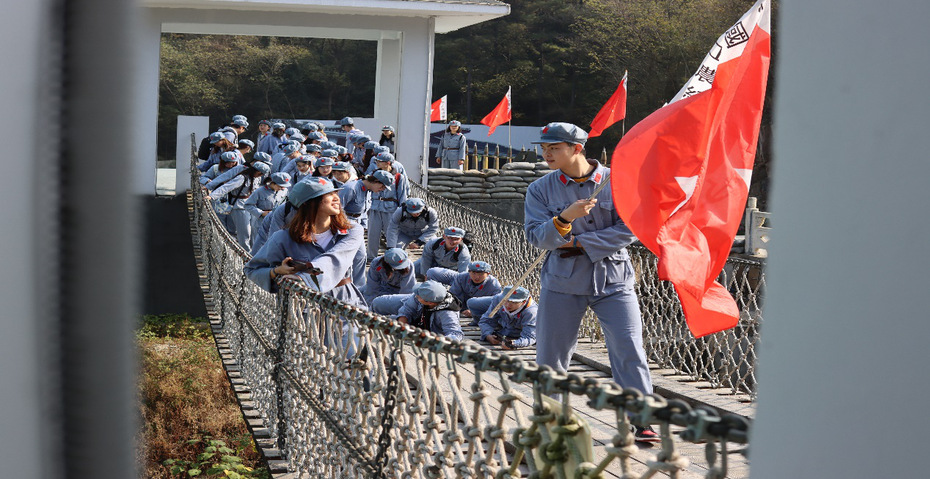 本次活动分为重走长征路和参观学习两个部分。来到国防园,同学们换上整洁朴素的红军战服,帽子上鲜红的五角星让大家显得精神焕发,在重走长征路的起始点瑞金广场集合后,宣誓出发,踏上征程。长征途中,经过减重冲锋、遵义会议,四渡赤水、飞夺泸定桥、翻越雪山、草地会谈、胜利会师等过程,同学们积极参与体验,认真聆听导游的讲解,再现红军走过千山万水、历经千难万险、吃尽千辛万苦的历程,学习革命先辈忠诚担当、不怕牺牲、自强不息、敢于胜利的宝贵精神。