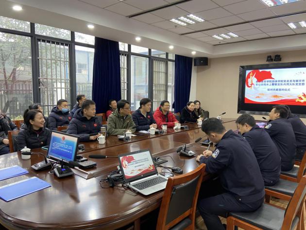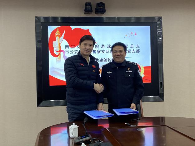 游泳学院党总支全体党员,南京市公安局水上警察支队内河大队党支部全体党员参加了“结对共建”签约仪式。