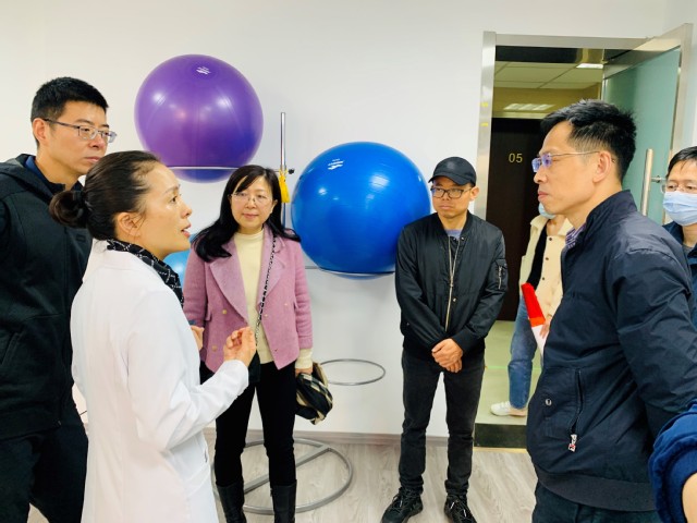 随后,在迈皋桥社区卫生服务中心魏丽君院长、康复科主任陈宝宜的陪同下,一行人参观了医院康复科,了解社区医院康复科的主要服务对象和体医融合在社区开展的现状。