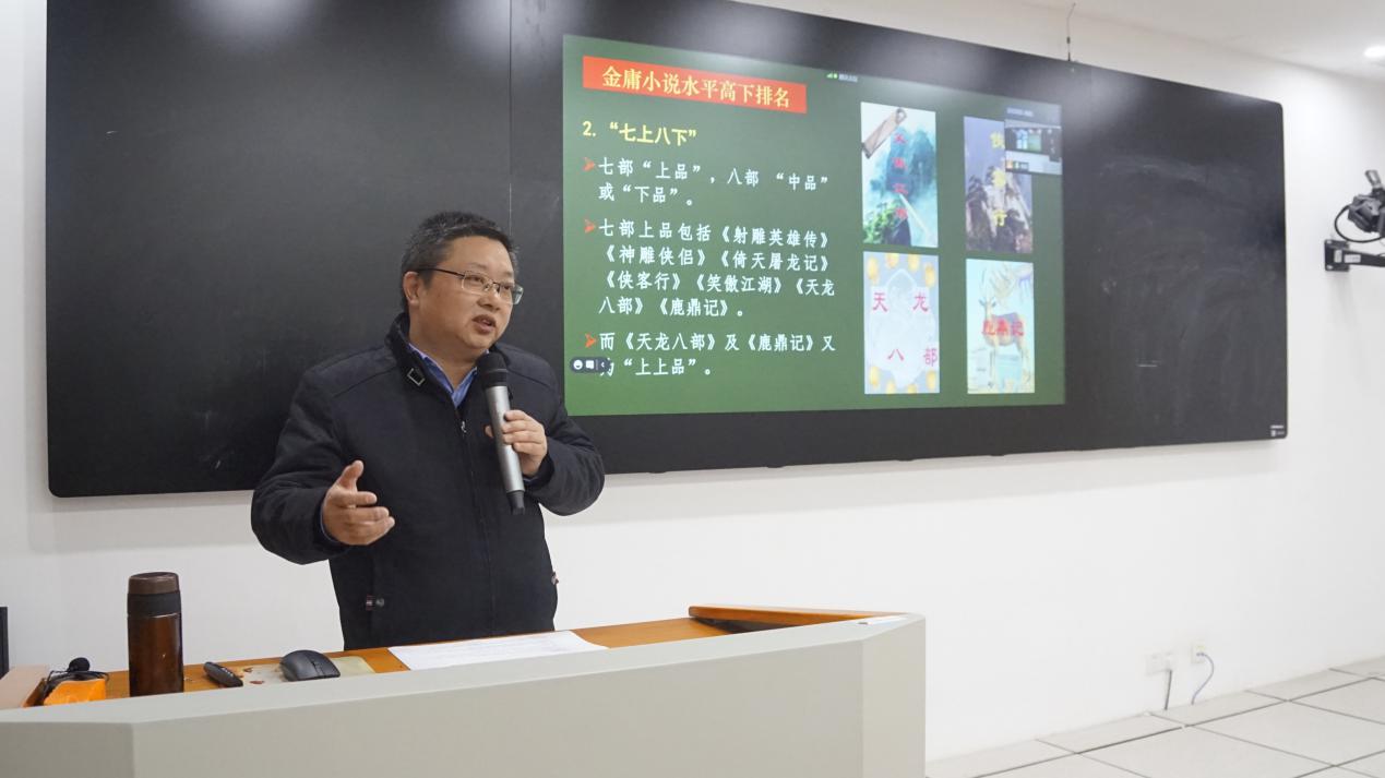 为培养学生课外阅读兴趣和文化感知,深度挖掘金庸先生武侠小说的武侠精神与文化内涵,12月2日晚,图书馆邀请南京林业大学图书馆馆长、金庸武侠小说知名研究学者王全权教授开展书香南体“‘全’释金庸——侠士·武德·家国情怀”文化讲座。讲座由图书馆副馆长李明华主持。150余名师生在图书馆第二报告厅,仙林校区401、402教室通过现场或直播方式聆听了精彩的讲座。
