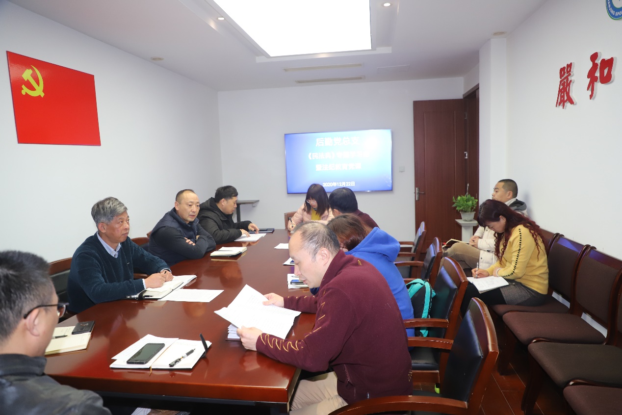 12月22日,后勤党总支在后勤处会议室召开《民法典》专题学习会暨法纪教育党课。后勤党总支委员、处级干部、党支部书记 及科室负责人参加学习。