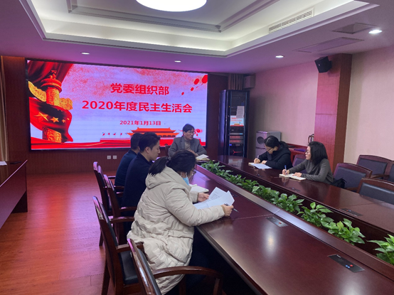 1月13日中午党委组织部于行政楼301会议室召开2020年度民主生活会,会议紧扣“认真学习贯彻习近平新时代中国特色社会主义思想,加强政治建设,提高政治能力,坚守人民情怀,在夺取决胜全面建成小康社会、实现第一个百年奋斗目标的伟大胜利的基础上,开启全面建设社会主义现代化国家新征程,做好学校‘十四五’规划开篇布局,科学谋划,推进‘新南体’建设各项事业发展”的主题,紧密联系班子、个人思想和工作实际,深入进行党性分析,认真开展批评与自我批评。党委常委、党委组织部部长陆玉林主持会议并作总结,部门全体人员参加会议。