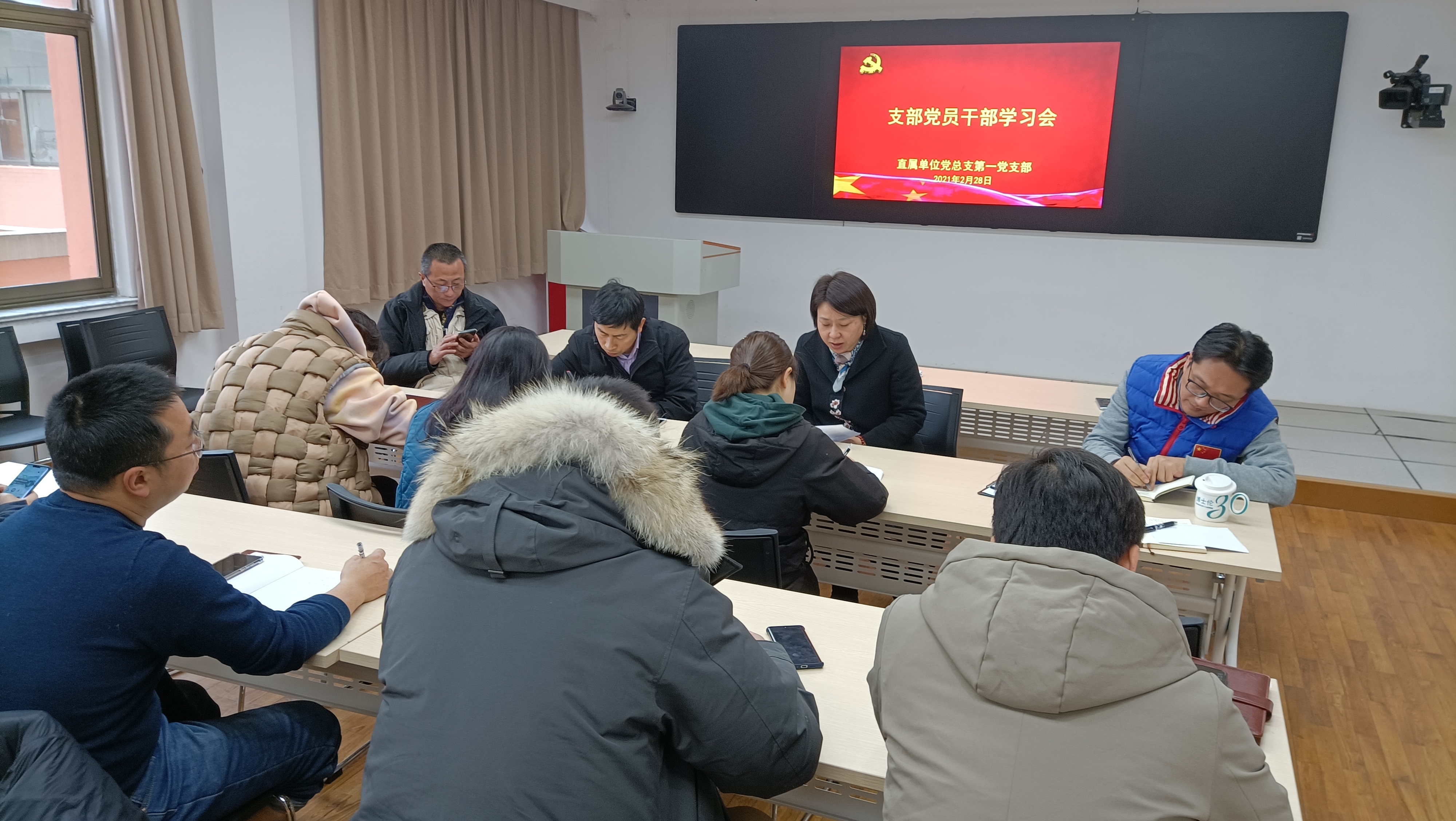 2月28日下午,直属单位党总支第一党支部召开党员干部学习会,直属单位党总支书记、信息化中心主任、图书馆馆长葛见珠主持会议,一支部全体党员干部参加会议。