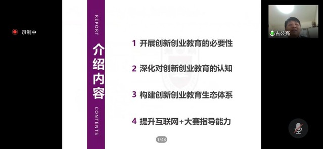 古公亮教授作了题为《从深化对双创教育的认识入手提升“互联网+”大赛的指导能力》的报告,他从开展创新创业教育的必要性、深化对创新创业教育的认知、构建创新创业教育生态体系、提升“互联网+”大赛指导能力等四个方面对如何提升大赛指导能力进行了深入分析与阐述。