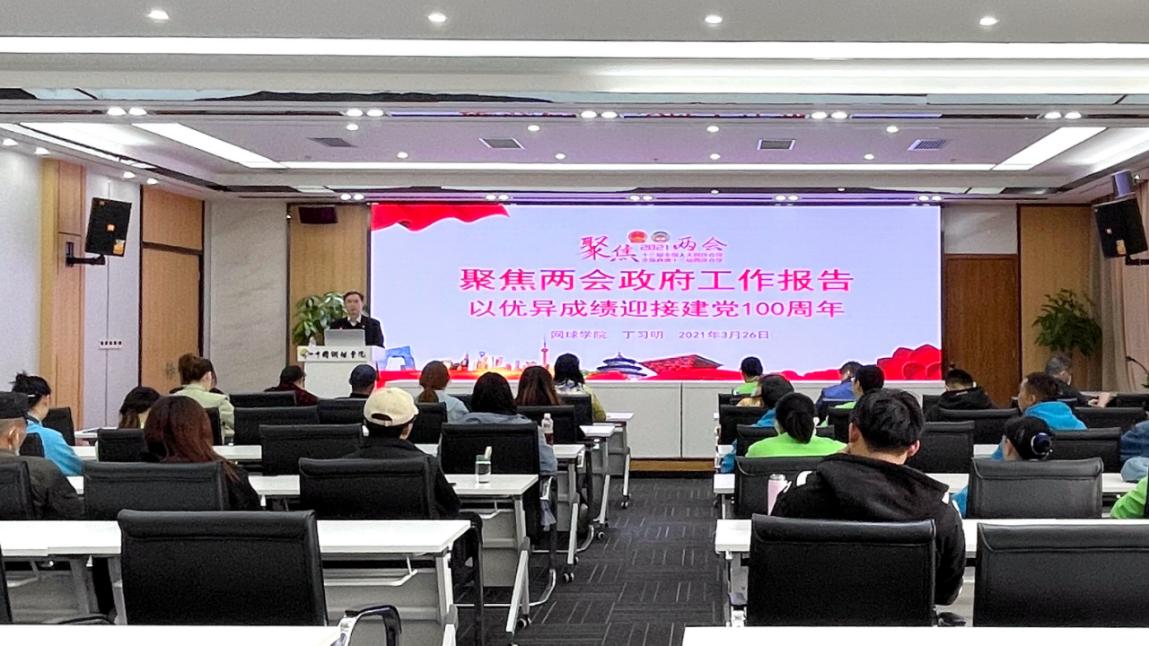 3月26日上午,网球学院召开专题学习会,传达学习2021年全国“两会”精神。网球学院直属党支部书记丁习明,网球学院直属党支部副书记、院长鲍勤出席会议。网球学院全体教职员工、教练员等参加会议。