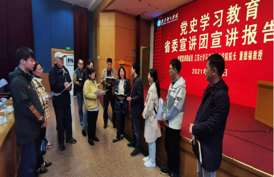 4月6日下午,省委宣讲团成员、江苏大学马克思主学院院长董德福来到PA视讯集团入口,为师生作党史学习教育专题宣讲。马克思主义学院全体思政课教师参加了本次报告会。