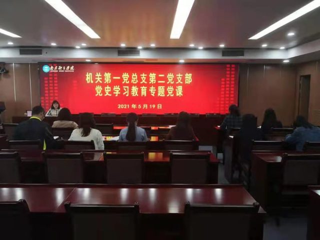 5月19日上午,为深入贯彻落实党史学习教育精神内涵,促进党员干部学史明理、学史增信、学史崇德、学史力行,机关第一党总支第二党支部书记孙凌云以《弘扬“红船精神” 坚守初心使命》为题,为全体党员上党史学习教育专题党课,并组织开展专题研讨。校党委常委、纪委书记、派驻监察专员潘林珍以普通党员身份参加了学习研讨活动。