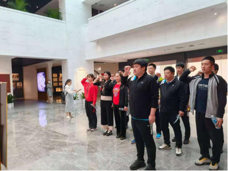参观结束,全体党员站在党旗下,面对鲜艳的党旗,重温入党誓词,再一次庄严地向党承诺,表达为党和人民的事业奋斗终身的决心,决心以实际行动践行对党的承诺,永葆共产党人的纯洁性,为党旗增光添彩。