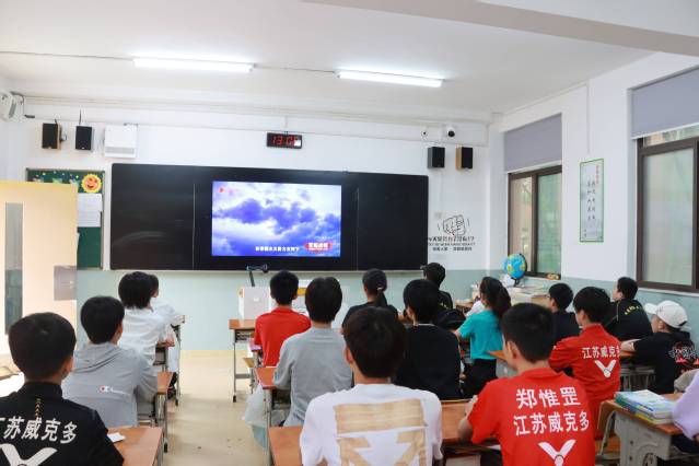 在主题班会课上,各班主任首先带领学生开展“唱红歌 学革命精神”或“诵读革命经典诗词,学革命精神”活动。班主任通过介绍作品的创作背景与精神内涵,引导学生在学习与传唱中了解中国共产党的光辉历程;全班或合唱红歌,歌声嘹亮有力,或一齐吟诵革命经典诗词,感受字里行间的奋斗力量。接着,学生们集体收看微纪录片《百炼成钢 中国共产党100年》的1-2集,回顾了建党之初那一段峥嵘岁月。