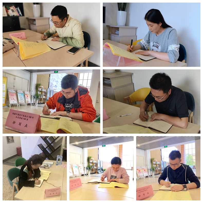2021年是中国共产党建党100周年,全国开展了轰轰烈烈的党史学习教育。直属单位党总支第一党支部党员怀着无比激动的心情,于5月18至20日期间,纷纷来到图书馆红色诗歌抄写点,开展了别开生面的党史诗歌抄写接龙主题党日活动。党员们通过抄写一首首展示我们党在各个历史阶段英勇奋战、锐意进取的革命精神的红色诗词,共同学习革命先辈的光辉事迹,重温中国共产党的百年历程,赓续共产党人的奋斗精神,抒发南体人爱党敬党的美好情怀。