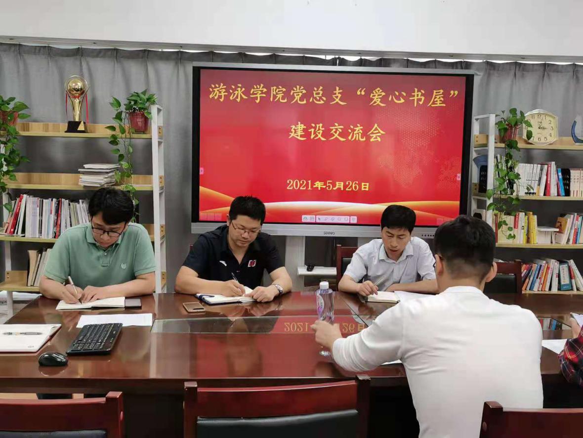 交流会上,陈志介绍了游泳学院党总支“爱心书屋”建设方案和目前推进情况。“爱心书屋”项目的定位是为运动员、教练员训练之余的文化学习、专业研究、文化生活服务,努力培养运动员的阅读习惯与文献素养,帮助教练员开拓专业视野、提升科学训练水平。