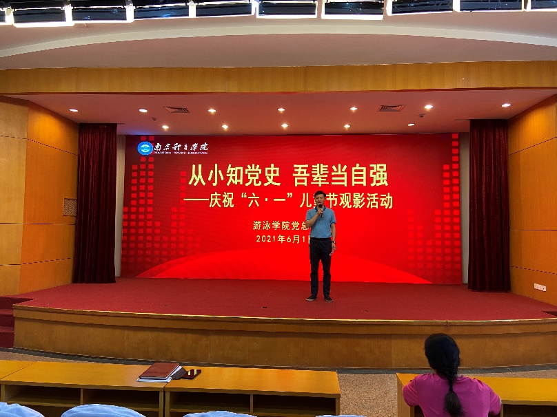 为传承爱国主义精神,激发少年儿童的爱国情怀,在第71个国际“六•一”儿童节来临之际,游泳学院党总支举行“从小知党史 吾辈当自强”——庆祝“六•一”儿童节观影活动。游泳学院党总支全体管理干部、三线教练员和三线运动员一起观看了电影《八佰》。