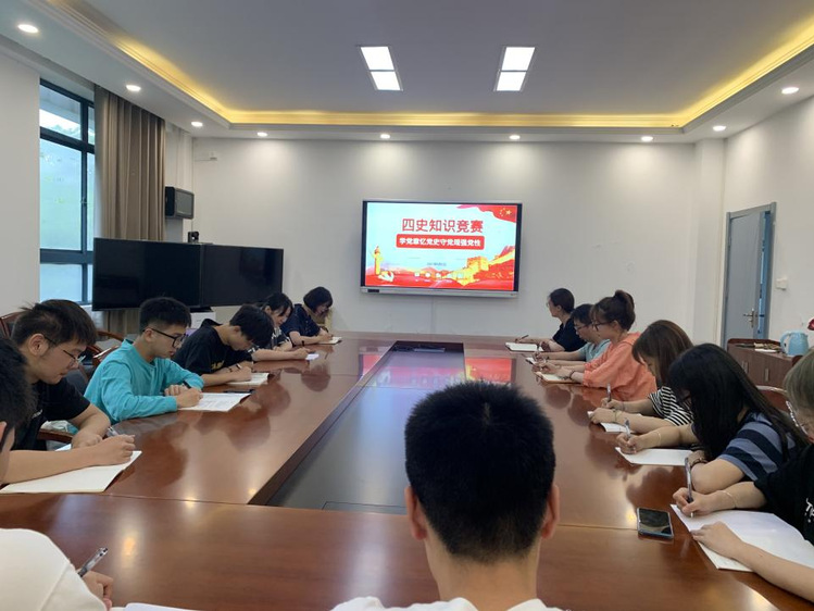 在学院选手的选拔阶段,学院党总支书记王进进行了赛前动员。他指出,党史考试既是一次党性考验、能力提升,也是一次心灵洗礼、加油充电,更是一次理想信念的强化。希望大家能够以此竞赛为契机,真正做到知史爱党、知史爱国,知史爱岗。选拔考试的内容涵盖了《论中国共产党历史》、《毛泽东邓小平江泽民胡锦涛关于中国共产党历史论述摘编》、《习近平新时代中国特色社会主义思想学习问答》、《中国共产党简史》等内容,题型为填空、单选、多选、简答等。经过学院选拔后,推荐刘雪薇、朱金宁、刘叶郁和韩默老师以及李明远同学参加学校竞赛。