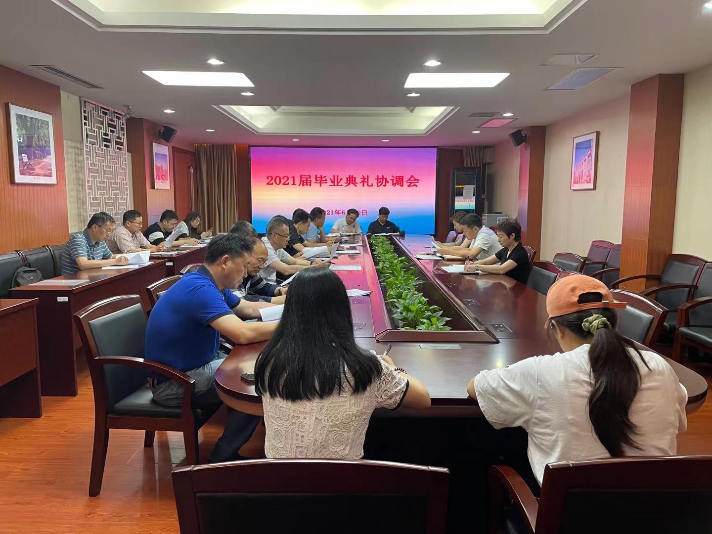 6月10日下午,党政办在行政楼301会议室组织召开2021届毕业典礼协调会,党政办、宣传部、教务处、学工处、研究生部、后勤处、保卫处、训练处、信息化中心、团委、运动康复医院及教学单位党政主要负责人出席会议,会议由党政办主任丁永亮主持。