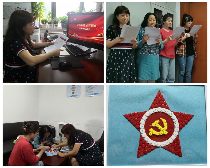 审计处处长王淑娜讲述了她的家乡河北的抗日英雄——“狼牙山五壮士”,为掩护队伍和群众撤离宁死不屈、与敌人抗争到底的英勇事迹;党小组集体朗诵了《我是一名共产党员》;一同动手制作党徽纽扣画。用革命英雄人物事迹引导党员传承红色基因,通过亲身参与提高认识。党员们思想受到洗礼,继续以昂扬的精神状态投入到工作岗位。