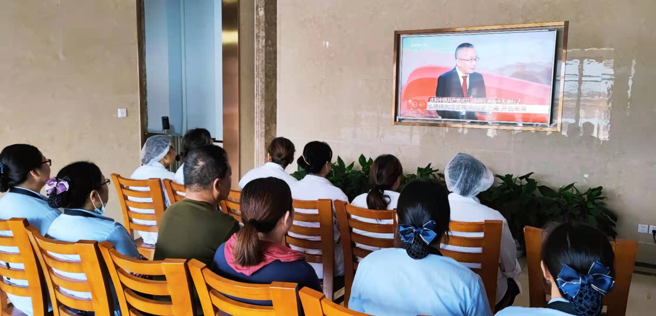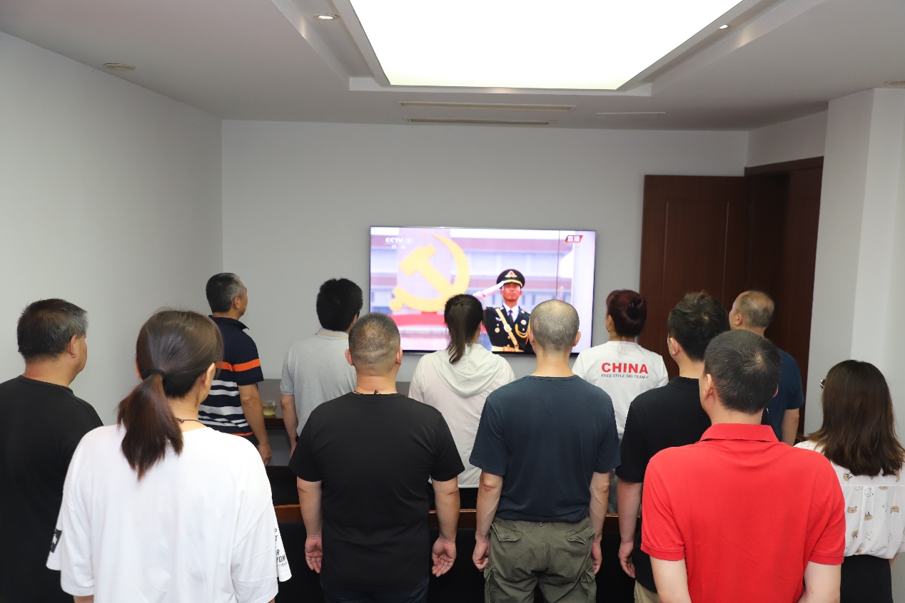 7月1日上午,后勤党总支组织党员群众收看庆祝中国共产党成立100周年大会实况,聆听学习习近平总书记在大会上的重要讲话精神。