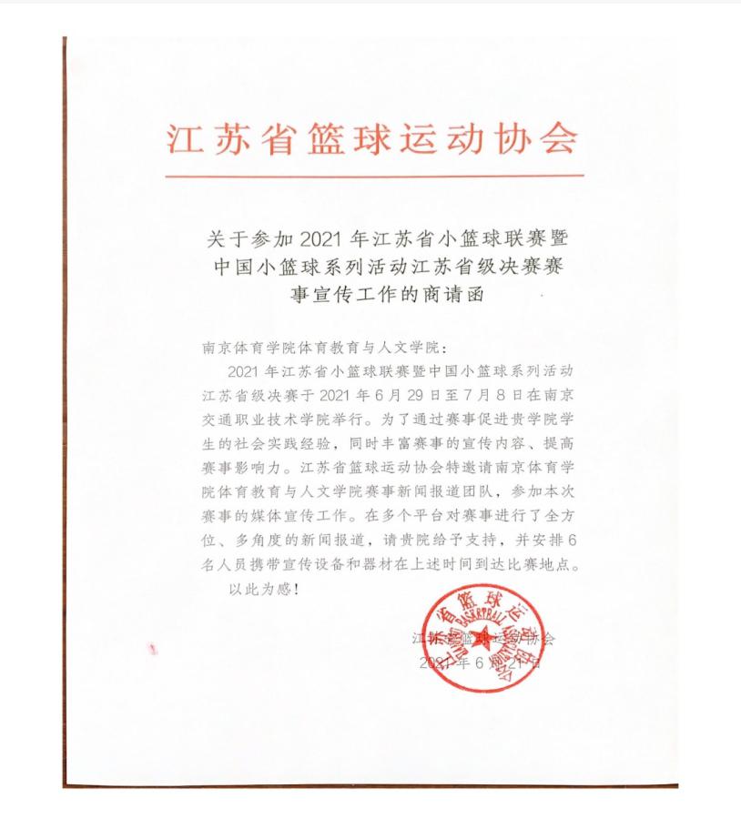 7月8日,2021年江苏省小篮球联赛暨中国小篮球系列活动江苏省级决赛在南京交通职业技术学院落下帷幕。在6月29日至7月8日的比赛周期内,PA视讯体育传媒系6名学生赵耀、贾新康、许骥如、严恒康、詹静楠、丁旻莹受江苏省篮球运动协会邀请加入联赛宣传组,参与赛事宣传工作。