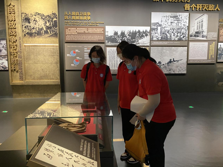 淮海战役纪念馆中“十人桥”体验场景前,实践团成员触摸仅有4度的木板,抬起沉重的木板,想象着10名勇士站在冰冷刺骨的河水里,700多名士兵在他们用身体支撑的人桥上奔跑的场景。“没有桥腿我们就当桥腿!体验到这10名战士所处的真实环境,才理解这句话背后蕴含的是战士们甘为人梯、无私奉献的牺牲精神,正因为每一位战士无畏牺牲,与敌军殊死拼搏,才能换来淮海战役以少胜多的奇迹。”实践团成员满羽佳感慨道。