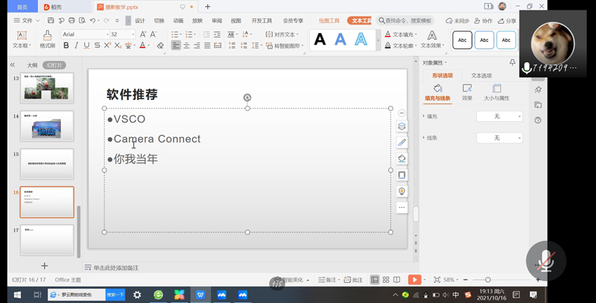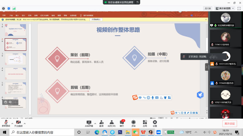 10月16日,校大学生记者团技能培训会通过腾讯会议在线上开展,本次会议由记者团团长陈伟洁主持,目的是让新成员深入了解记者团工作并学习推文制作、视频剪辑、照片拍摄等技能。