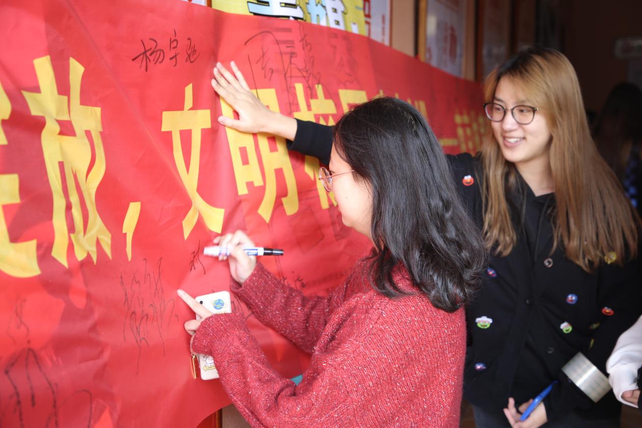 10月22日中午,共青团PA视讯集团入口委员会积极响应学校号召,开展“礼仪之花常绽放文明校园我来创”——PA视讯集团入口文明用语周线下活动,于图书馆前、运动员公寓门口举行了线下宣讲以及文明承诺签名等活动,号召全校青年争做校园文明建设的先行者和传播者,以实际行动营造文明校园环境,在奋斗中追梦,在奋斗中圆梦,争做有信仰、有责任、有担当的新时代南体青年。