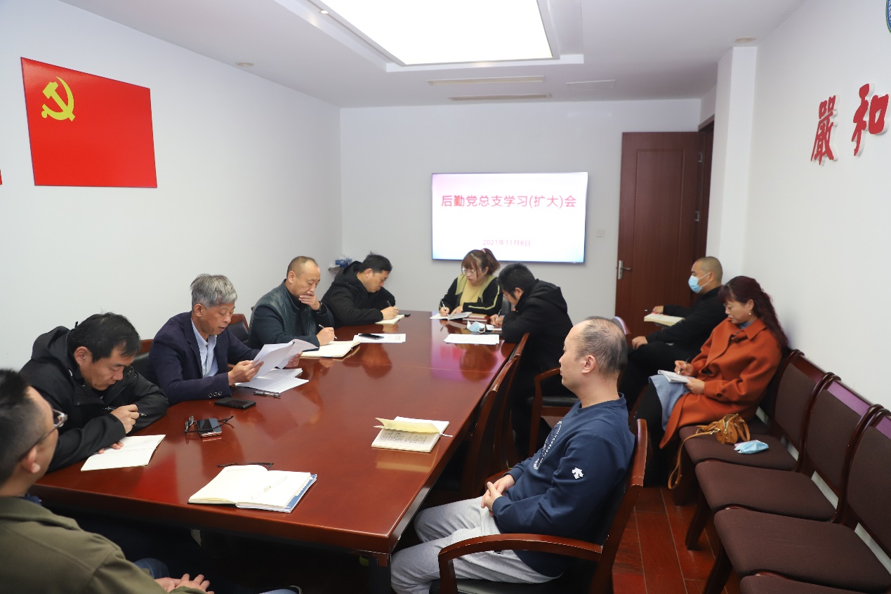 11月8日上午,后勤党总支召开学习(扩大)会议 。后勤党总支委员、处级干部、党支部书记及各科室负责人参加会议。