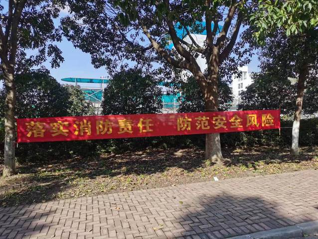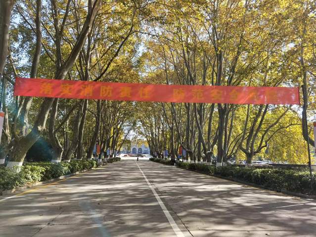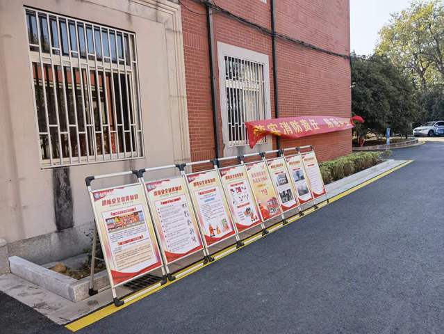 在灵谷寺校区和仙林校区摆放消防安全知识展板和悬挂活动主题横幅。
